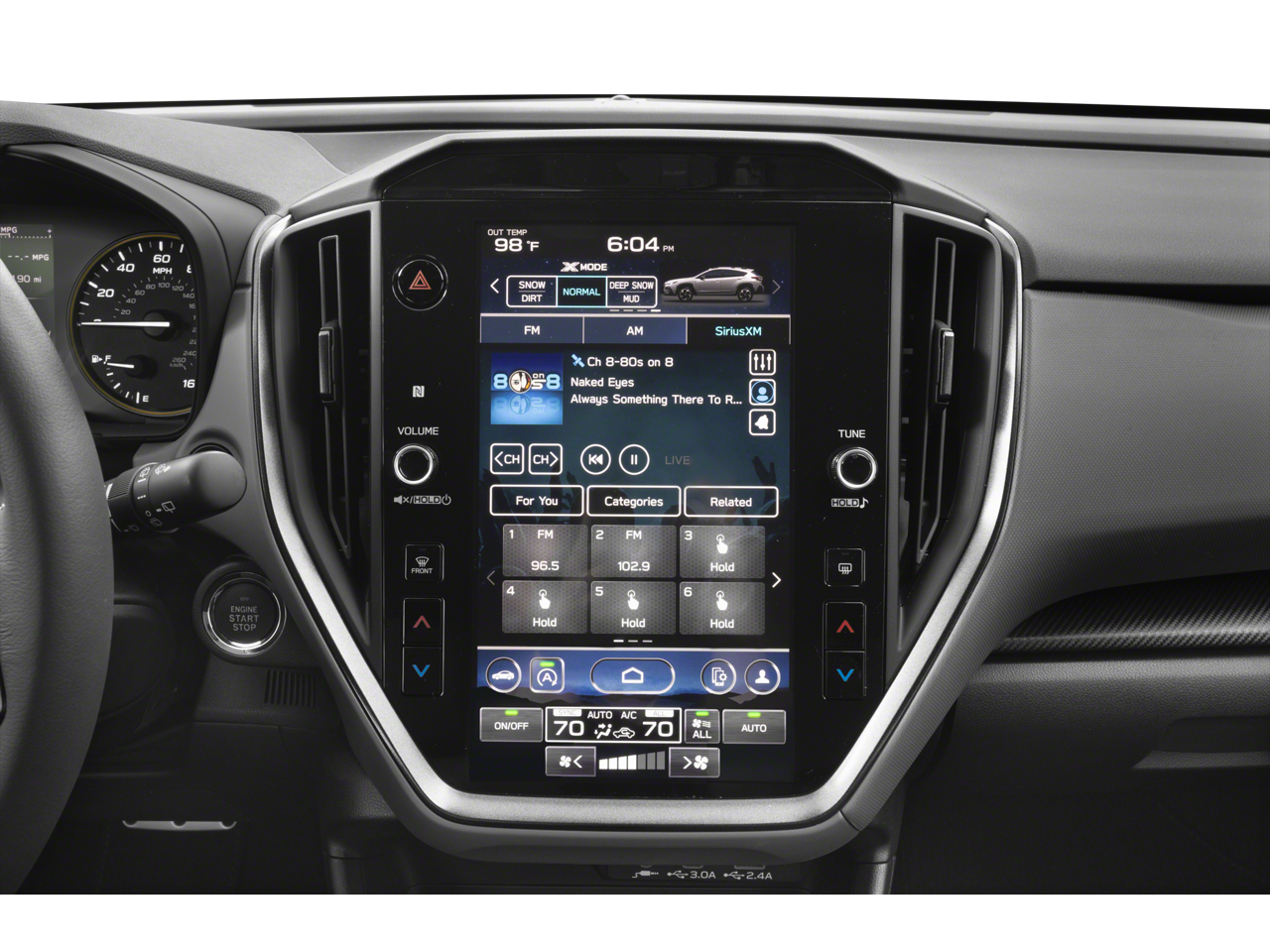 - Radio: Subaru STARLINK 11.6" Multimedia Plus Sys -inc: AM/FM stereo, HD Radio, multi-touch gesture high resolution display screen, voice activated controls, Bluetooth® audio streaming and hands-free phone connectivity, Bluetooth® hands-free SMS text messaging connectivity, iPod control capability, SiriusXM w/360L (4 months free trial included/subscription required after), SiriusXM Travel Link (4 months free trial included/subscription required after), smartphone integration: Android Auto and Apple CarPlay w/full screen view and wireless connection, USB and Over The Air (OTA) audio system update, steering wheel audio system and Bluetooth® control switches, 6 speakers (2 dash panel tweeter, 2 front door and 2 rear door), illuminated 3.5mm auxiliary input jack, illuminated front USB A and C input/charge ports and illuminated rear USB A and C charge ports