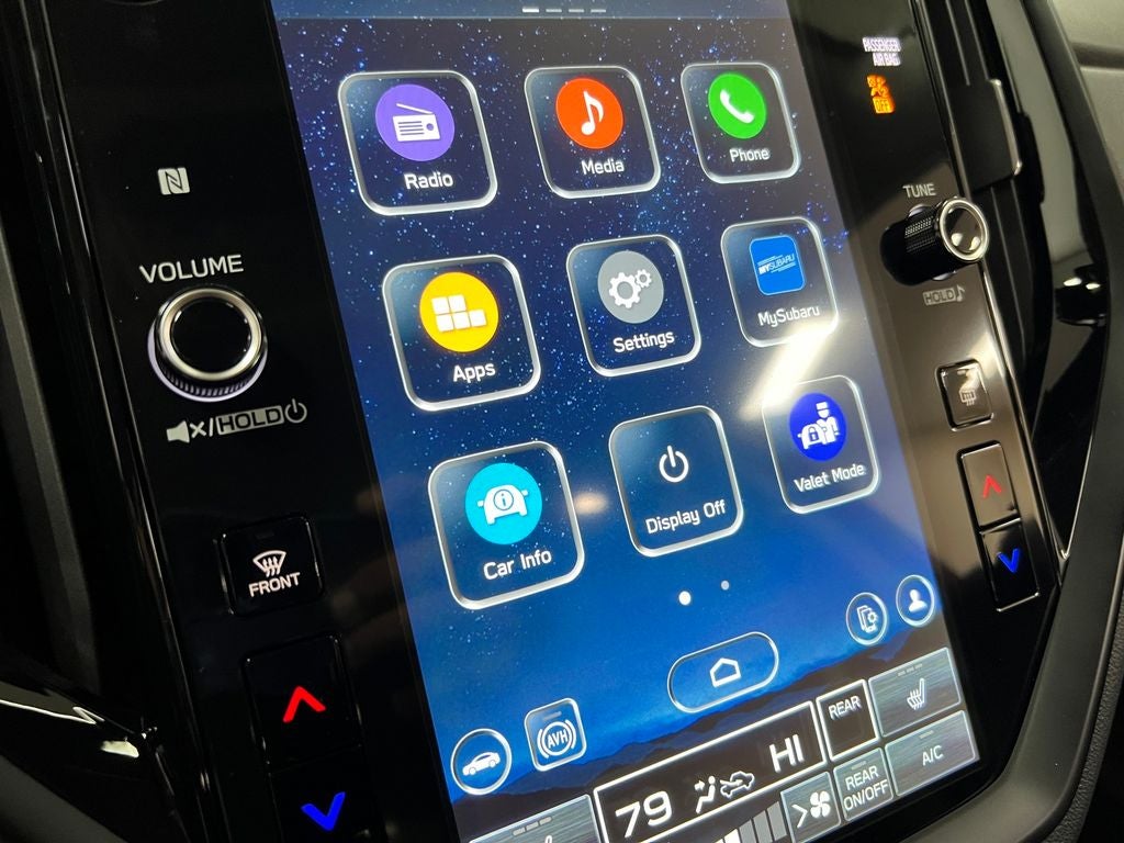 - Radio: Subaru 11.6" Multimedia Plus System -inc: AM/FM stereo HD Radio, multi-touch gesture high resolution display screen, voice activated controls, Bluetooth® audio streaming and hands-free phone connectivity w/SMS text messaging connectivity (refer to subaru.com for cell phone compatibility), iPod control capability, smartphone integration for Android Auto and Apple CarPlay w/full screen view and wireless connection, USB audio system update, audio system control switches, hands-free phone switches and voice command talk switch on steering wheel, 6 speakers, illuminated 3.5mm auxiliary input jack, illuminated USB A and C input/charge ports, SiriusXM w/360L (requires an active subscription: 4 months free trial included/subscription required after) and SiriusXM Travel Link (requires an active subscription: 4 months free trial included/subscription required after)