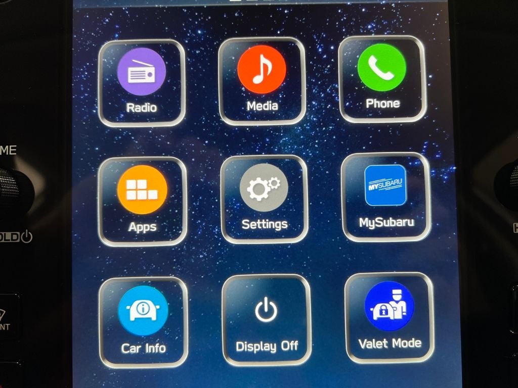 - Radio: Subaru 11.6" Multimedia Plus System -inc: AM/FM stereo, HD Radio, multi-touch gesture high resolution display screen, voice activated controls, Bluetooth® audio streaming and hands-free phone connectivity, Bluetooth® hands-free SMS text messaging connectivity, iPod control capability, smartphone integration: wired and wireless Android Auto w/full screen view and wireless Apple CarPlay w/full screen view, USB and Over The Air (OTA) audio system update, steering wheel audio system and Bluetooth® control switches, 6 speakers (2 dash panel tweeter, 2 front door and 2 rear door), illuminated 3.5mm auxiliary input jack, illuminated front USB A and C input/charge ports, connected services operation indicator, SOS emergency assistance: red SOS button and enhanced roadside assistance: blue i-button