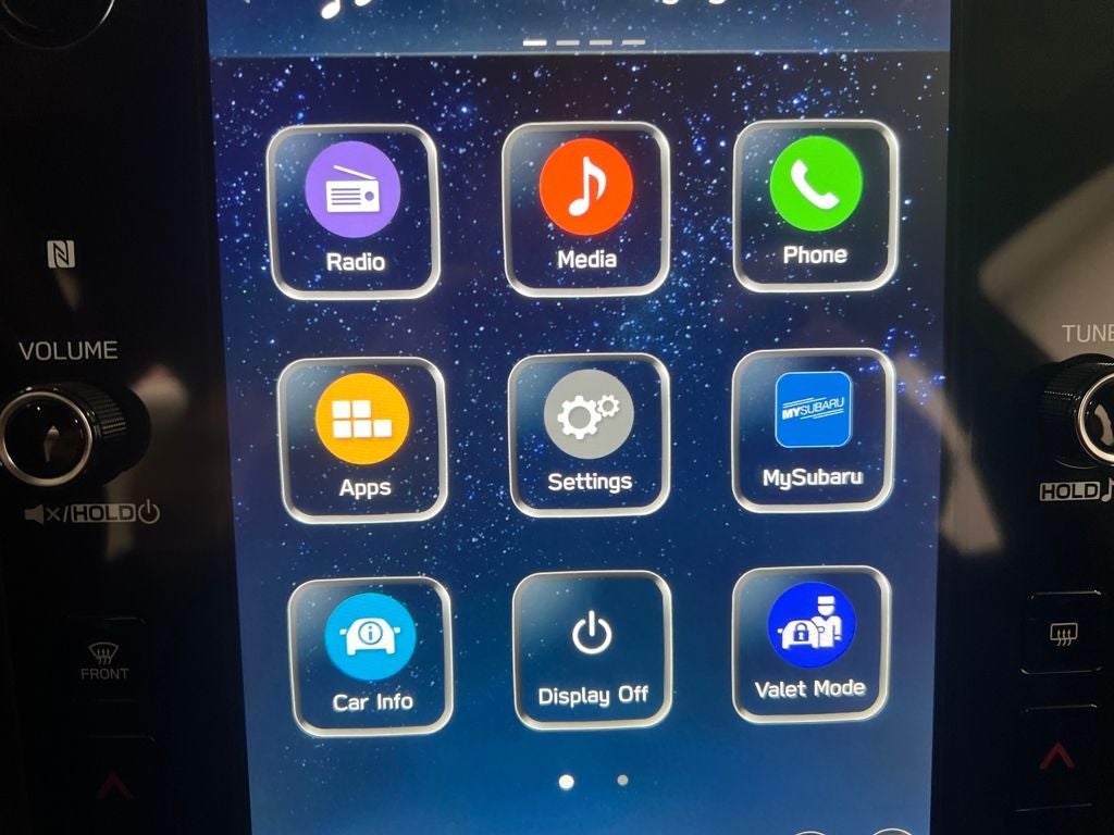 - Radio: Subaru 11.6" Multimedia Plus System -inc: AM/FM stereo, HD Radio, multi-touch gesture high resolution display screen, voice activated controls, Bluetooth® audio streaming and hands-free phone connectivity, Bluetooth® hands-free SMS text messaging connectivity, iPod control capability, smartphone integration: wired and wireless Android Auto w/full screen view and wireless Apple CarPlay w/full screen view, USB and Over The Air (OTA) audio system update, steering wheel audio system and Bluetooth® control switches, 6 speakers (2 dash panel tweeter, 2 front door and 2 rear door), illuminated 3.5mm auxiliary input jack, illuminated front USB A and C input/charge ports, connected services operation indicator, SOS emergency assistance: red SOS button and enhanced roadside assistance: blue i-button