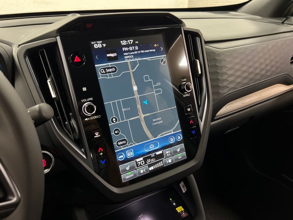 - Radio: Subaru 11.6" Multimedia Navigation System -inc: valet mode, integrated center information display, AM/FM stereo HD Radio, multi-touch gesture high resolution display screen, voice activated controls, voice activated navigation, Bluetooth® audio streaming and hands-free phone connectivity w/SMS text messaging (refer to Subaru.com for cellphone compatibility), TomTom navigation software w/what3words, iPod control capability, smartphone integration: Android Auto and Apple CarPlay w/full screen view and wireless connection, SiriusXM satellite radio w/360L (free 4-month trial subscription included), USB and Over The Air (OTA) audio system update, USB and Map Over The Air (MOTA) TomTom navigation system update (3 years free map updates), steering wheel controls, harman/kardon speaker system w/11 speakers and 576 watt equivalent maximum output amplifier, 3.5mm auxiliary input jack and roof mounted audio, satellite antenna and SiriusXM Travel Link (4 months free trial included/subscription required after)