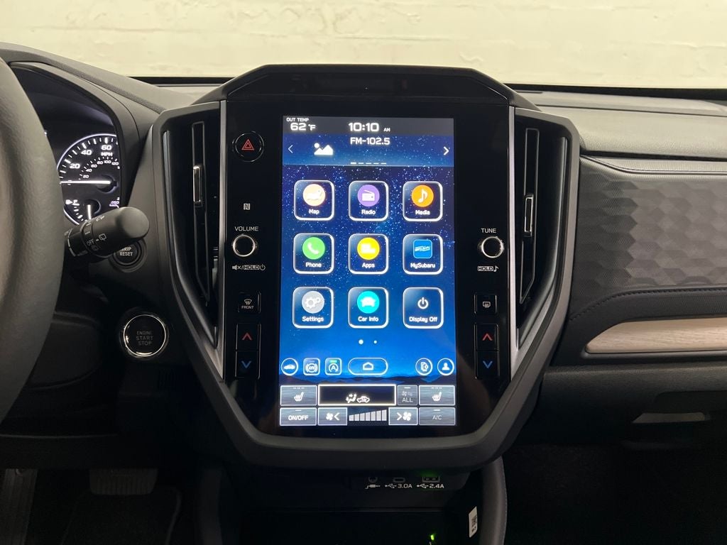 - Radio: Subaru 11.6" Multimedia Plus System -inc: valet mode, integrated center information display, AM/FM stereo HD Radio, multi-touch gesture high resolution display screen, voice activated controls, Bluetooth® audio streaming and hands-free phone connectivity w/SMS text messaging (refer to Subaru.com for cellphone compatibility), iPod control capability, smartphone integration: Android Auto and Apple CarPlay w/full screen view and wireless connection, SiriusXM satellite radio w/360L (free 4-month trial subscription included), USB and Over The Air (OTA) audio system update, steering wheel controls, 6 speakers, 3.5mm auxiliary input jack and roof mounted audio and satellite antenna