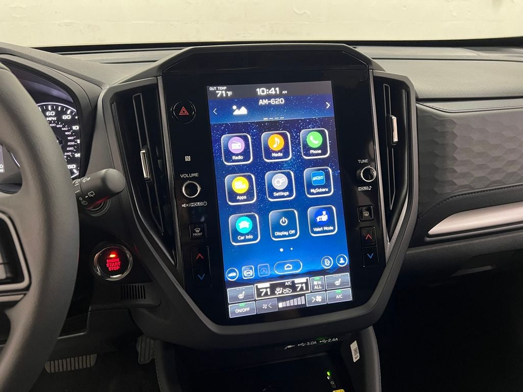 - Radio: Subaru 11.6" Multimedia Plus System -inc: valet mode, integrated center information display, AM/FM stereo HD Radio, multi-touch gesture high resolution display screen, voice activated controls, Bluetooth® audio streaming and hands-free phone connectivity w/SMS text messaging (refer to Subaru.com for cellphone compatibility), iPod control capability, smartphone integration: Android Auto and Apple CarPlay w/full screen view and wireless connection, USB and Over The Air (OTA) audio system update, steering wheel controls, 6 speakers, 3.5mm auxiliary input jack and roof mounted audio and satellite antenna