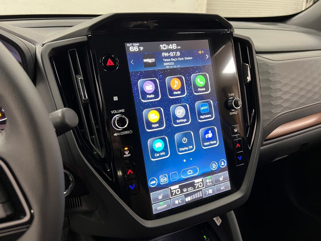 - Radio: Subaru 11.6" Multimedia Plus System -inc: valet mode, integrated center information display, AM/FM stereo HD Radio, multi-touch gesture high resolution display screen, voice activated controls, Bluetooth® audio streaming and hands-free phone connectivity w/SMS text messaging (refer to Subaru.com for cellphone compatibility), iPod control capability, smartphone integration: Android Auto and Apple CarPlay w/full screen view and wireless connection, USB and Over The Air (OTA) audio system update, steering wheel controls, 6 speakers, 3.5mm auxiliary input jack and roof mounted audio and satellite antenna