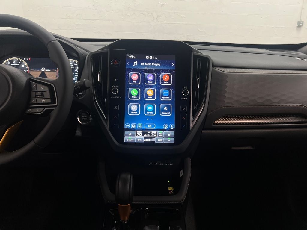 - Radio: Subaru 11.6" Multimedia Plus System -inc: valet mode, integrated center information display, AM/FM stereo HD Radio, multi-touch gesture high resolution display screen, voice activated controls, Bluetooth® audio streaming and hands-free phone connectivity w/SMS text messaging (refer to Subaru.com for cellphone compatibility), iPod control capability, smartphone integration: Android Auto and Apple CarPlay w/full screen view and wireless connection, SiriusXM satellite radio w/360L (free 4-month trial subscription included), USB and Over The Air (OTA) audio system update, steering wheel controls, 6 speakers, 3.5mm auxiliary input jack and roof mounted audio and satellite antenna