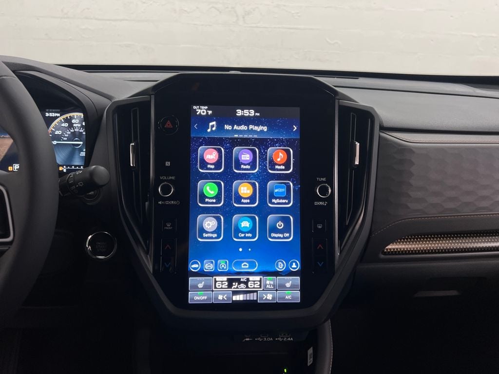 - Radio: Subaru 11.6" Multimedia Plus System -inc: valet mode, integrated center information display, AM/FM stereo HD Radio, multi-touch gesture high resolution display screen, voice activated controls, Bluetooth® audio streaming and hands-free phone connectivity w/SMS text messaging (refer to Subaru.com for cellphone compatibility), iPod control capability, smartphone integration: Android Auto and Apple CarPlay w/full screen view and wireless connection, SiriusXM satellite radio w/360L (free 4-month trial subscription included), USB and Over The Air (OTA) audio system update, steering wheel controls, 6 speakers, 3.5mm auxiliary input jack and roof mounted audio and satellite antenna