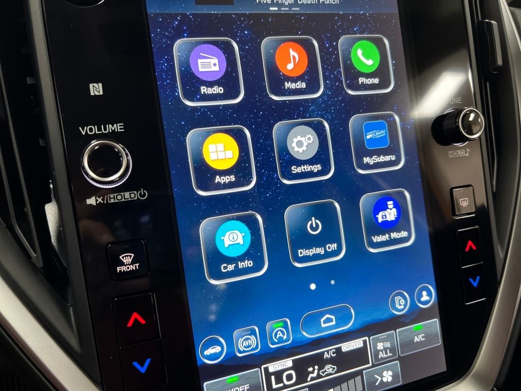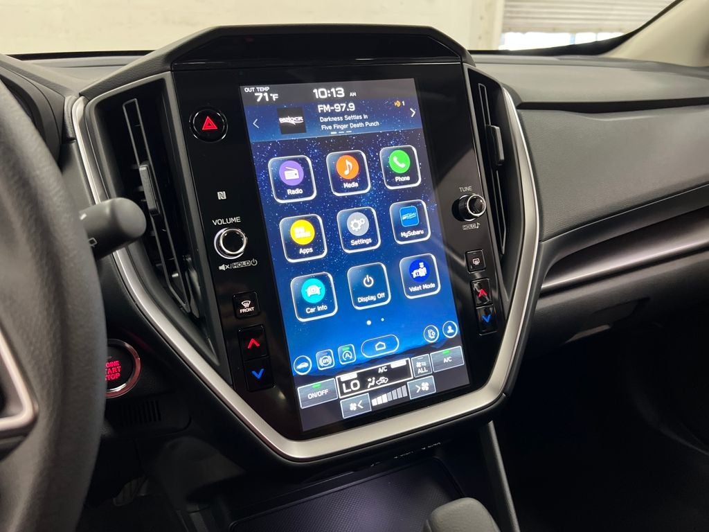 - Radio: Subaru 11.6" Multimedia Plus System -inc: valet mode, AM/FM stereo, HD Radio, multi-touch gesture high resolution display screen, voice activated controls, Bluetooth® audio streaming and hands-free phone connectivity, Bluetooth® hands-free SMS text messaging connectivity, iPod control capability, smartphone integration: wired and wireless Android Auto w/full screen view, wireless Apple CarPlay w/full screen view and wireless connection, USB and Over The Air (OTA) audio system update, audio system and Bluetooth® steering wheel control switches, 6 speakers (2 dash panel tweeter, 2 front door, 2 rear door), illuminated 3.5mm auxiliary input jack, illuminated USB A and C input charge ports, roof mounted satellite and connected services, roof mounted black antenna, connected services operation indicator, SOS emergency assistance (red button) and ehanced roadside assistance (blue i-button)