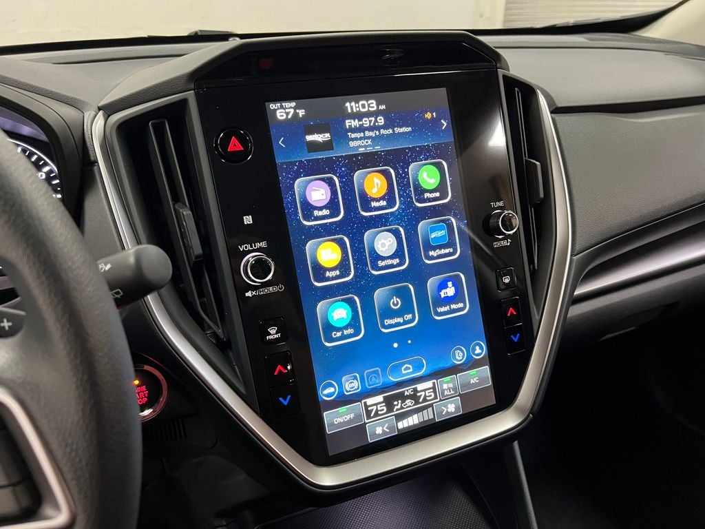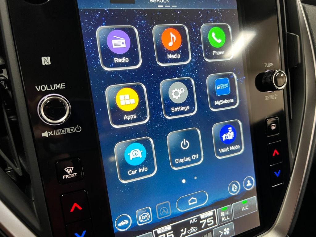 - Radio: Subaru 11.6" Multimedia Plus System -inc: valet mode, AM/FM stereo, HD Radio, multi-touch gesture high resolution display screen, voice activated controls, Bluetooth® audio streaming and hands-free phone connectivity, Bluetooth® hands-free SMS text messaging connectivity, iPod control capability, smartphone integration: wired and wireless Android Auto w/full screen view, wireless Apple CarPlay w/full screen view and wireless connection, USB and Over The Air (OTA) audio system update, audio system and Bluetooth® steering wheel control switches, 6 speakers (2 dash panel tweeter, 2 front door, 2 rear door), illuminated 3.5mm auxiliary input jack, illuminated USB A and C input charge ports, roof mounted satellite and connected services, roof mounted black antenna, connected services operation indicator, SOS emergency assistance (red button) and ehanced roadside assistance (blue i-button)