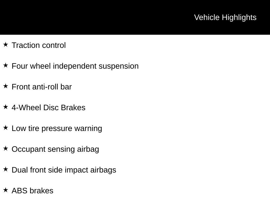- Brake ABS System: 4-Wheel