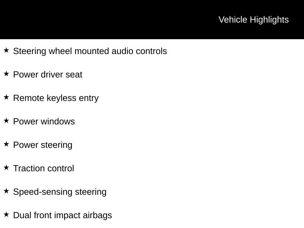 - Heated Front Bucket Seats -inc: power driver's seat w/lumbar support, front passenger seatback pocket and adjustable head restraints for all seats