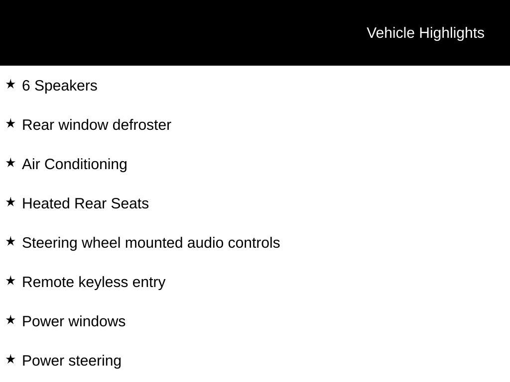 - Tailgate/Rear Door Lock Included w/Power Door Locks