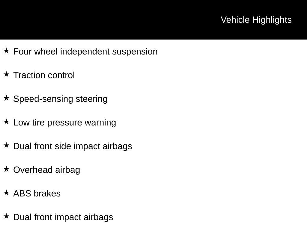 - 4-Wheel Disc Brakes w/4-Wheel ABS, Front Vented Discs, Brake Assist, Hill Descent Control and Hill Hold Control