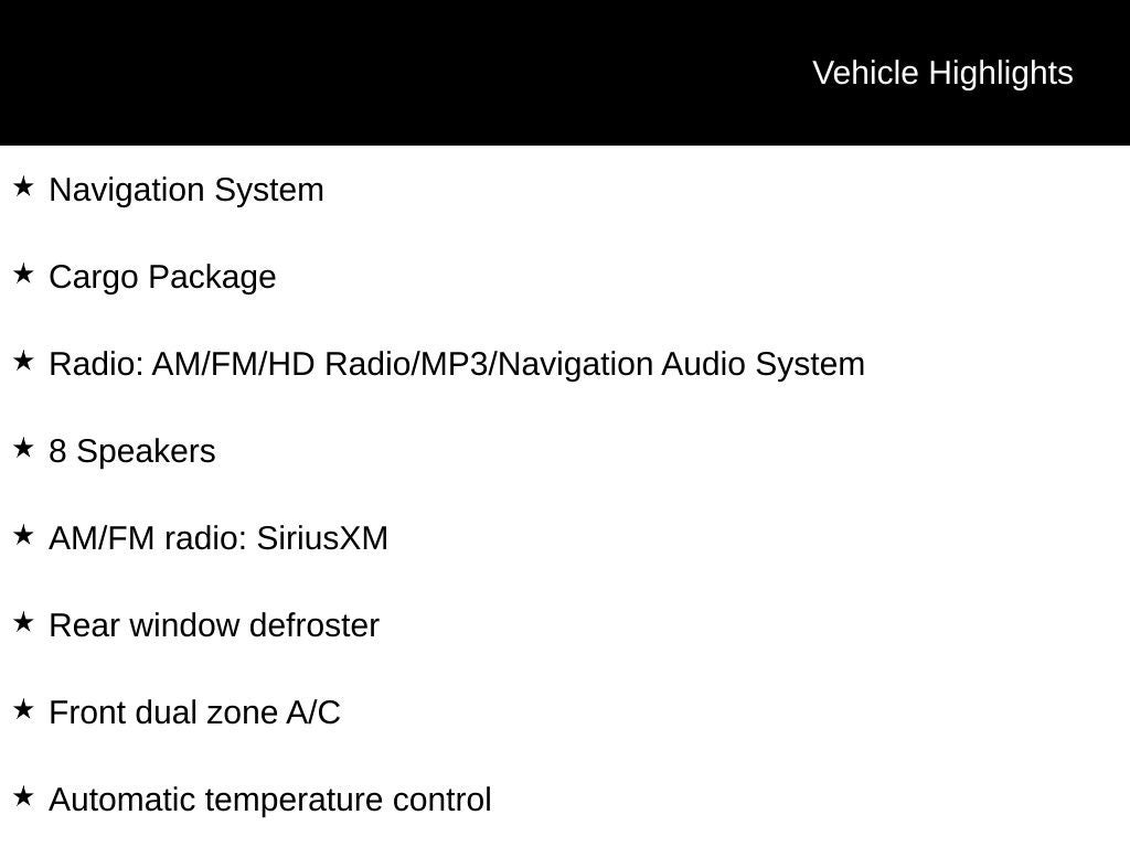 - Radio w/Seek-Scan, Clock, Speed Compensated Volume Control, Steering Wheel Controls and Voice Activation