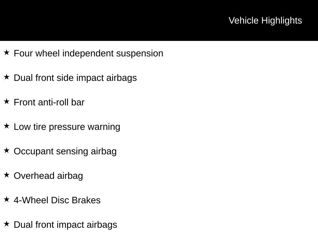 - Brake ABS System: 4-Wheel
