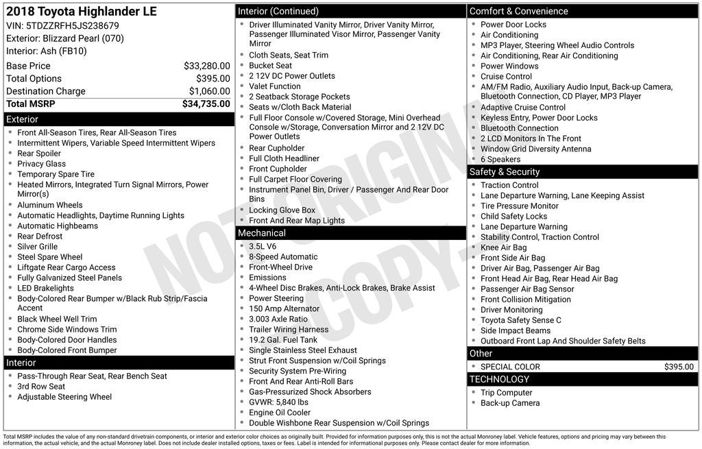 - Vehicle Name: Toyota Highlander