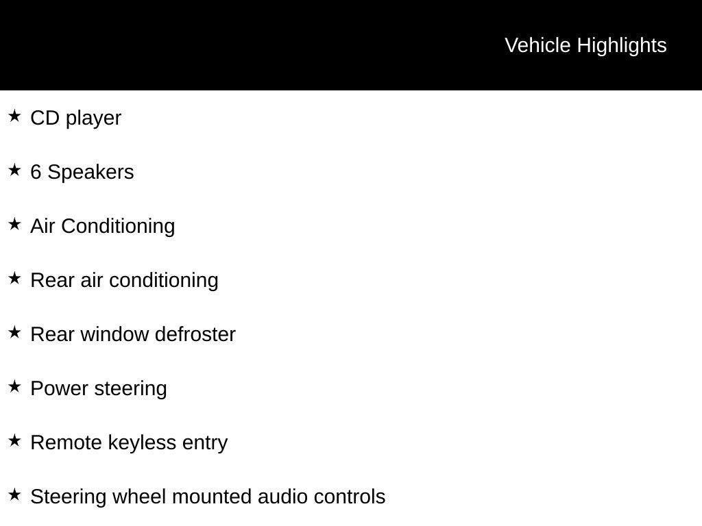 - Radio w/Seek-Scan, Clock, Speed Compensated Volume Control and Steering Wheel Controls