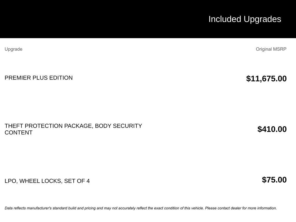 - E85 FlexFuel capable (Included and only available with Fleet or Government order types.)