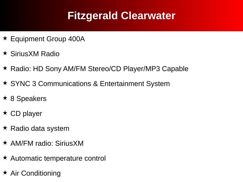 - SYNC 3 Communications & Entertainment System -inc: enhanced voice recognition communications and entertainment system, 6.5" LCD capacitive touchscreen in center stack w/swipe capability, AppLink, 911 Assist, Apple CarPlay compatibility, Android Auto compatibility and (2) smart charging USB ports