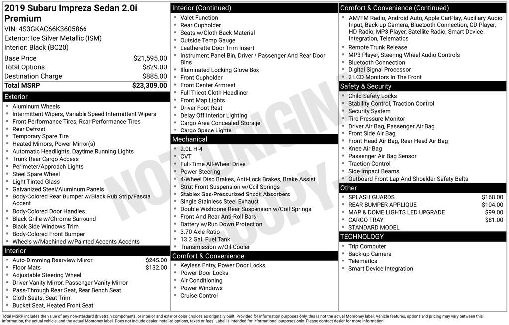 2019 Subaru Impreza 2.0i Premium