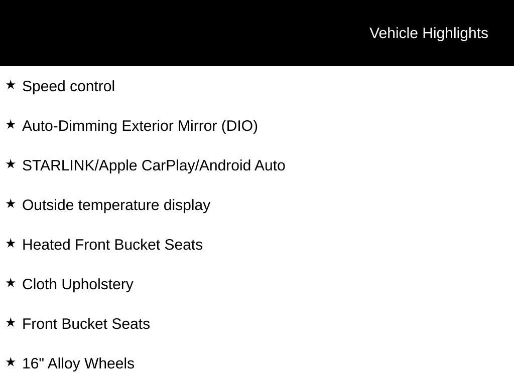 - Interior Trim -inc: Simulated Carbon Fiber Instrument Panel Insert, Simulated Carbon Fiber Door Panel Insert and Metal-Look Interior Accents