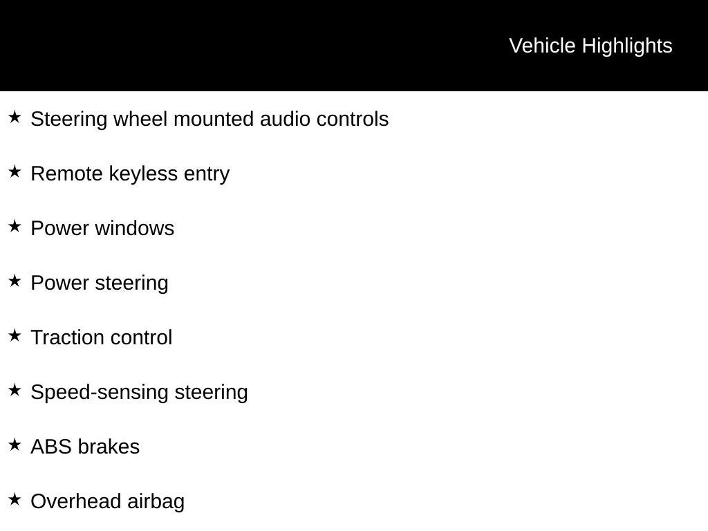 - Cruise Control w/Steering Wheel Controls