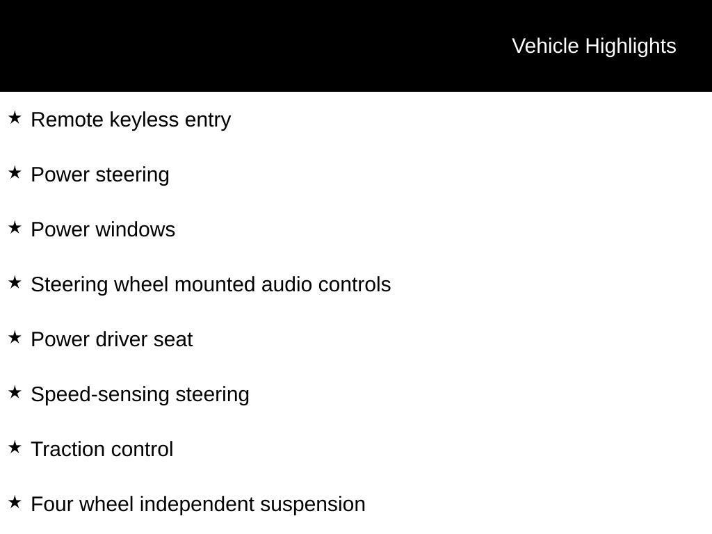 - Radio w/Seek-Scan, Clock, Steering Wheel Controls and Radio Data System
