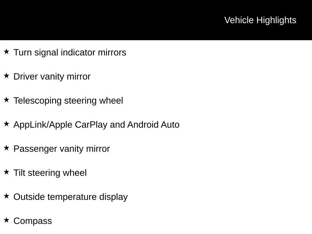 - Body-Colored Power w/Tilt Down Side Mirrors w/Manual Folding and Turn Signal Indicator