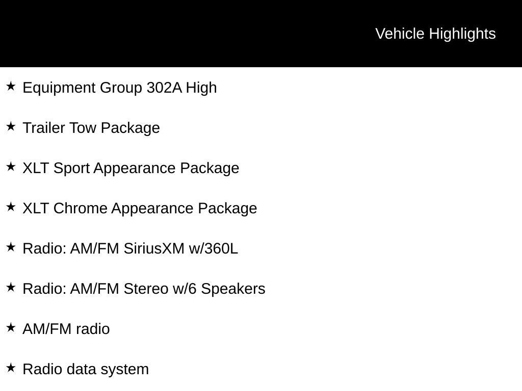 2022 Ford F-150 Rapid Red Metallic Tinted Clearcoat XLT RWD 10-Speed Automatic 5.0L V8 10-Way Power Driver & Passenger Seats, 2-Bar Style Grille w/Chrome 2 Minor Bars, 3.15 Axle Ratio, 4-Wheel Disc Brakes, 6 Speakers, 8 Productivity Screen in Instrument Cluster, ABS brakes, Accent-Color Step Bars, Air Conditioning, Alloy wheels, AM/FM radio, Auto High-beam Headlights, Auto Start-Stop Removal, Auto-Dimming Rear-View Mirror, Black 2-Bar Style Grille w/Black Surround/Accents, Body-Color Door & Tailgate Handles, Body-Color Front & Rear Bumpers, Box Side Decals, Brake assist, Bright Polished Step Bars, Bumpers: chrome, Chrome Door & Tailgate Handles w/Body-Color Bezel, Chrome Single-Tip Exhaust, Class IV Trailer Hitch Receiver, Cloth 40/20/40 Front Seat, Compass, Connected Navigation & SiriusXM w/360L Removal, Delay-off headlights, Driver door bin, Driver vanity mirror, Dual front impact airbags, Dual front side impact airbags, Dual Zone Electronic Automatic Temperature Control, Electronic Stability Control, Emergency communication system: SYNC 4 911 Assist, Equipment Group 302A High, Exterior Parking Camera Rear, Front anti-roll bar, Front Center Armrest w/Storage, Front fog lights, Front reading lights, Front wheel independent suspension, Fully automatic headlights, Heated door mirrors, Heated Front Seats, Illuminated entry, Integrated Trailer Brake Controller, Intelligent Access w/Push Button Start, Leather-Wrapped Steering Wheel, LED Reflector Headlamps, LED Sideview Mirror Spotlights, Low tire pressure warning, Occupant sensing airbag, Onboard 400W Outlet, Outside temperature display, Overhead airbag, Overhead console, Panic alarm, Passenger door bin, Passenger vanity mirror, Power door mirrors, Power Glass Heated Sideview Mirrors, Power steering, Power windows, Power-Sliding Rear Window, Pro Trailer Backup Assist, Radio data system, Radio: AM/FM SiriusXM w/360L, Radio: AM/FM Stereo w/6 Speakers, Rear reading lights, Rear step bumper, Rear Under-Seat Storage, Rear window defroster, Remote keyless entry, Remote Start System, Remote Start System w/Remote Tailgate Release, SecuriCode Drivers Side Keyless-Entry Keypad, Security system, Speed control, Speed-sensing steering, Split folding rear seat, Steering wheel mounted audio controls, SYNC 4, SYNC 4 w/Enhanced Voice Recognition, Tachometer, Telescoping steering wheel, Tilt steering wheel, Traction control, Trailer Tow Package, Trip computer, Unique Sport Cloth 40/Console/40 Front-Seats, Variably intermittent wipers, Voltmeter, Wheels: 17 Silver Painted Aluminum, Wheels: 18 6-Spoke Machined Aluminum, Wheels: 18 Chrome-Like PVD, XLT Chrome Appearance Package, XLT Sport Appearance Package, Zone Lighting.