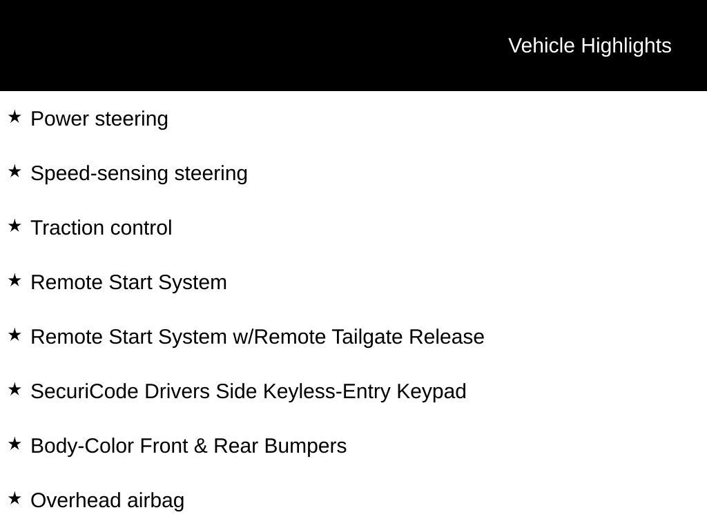 - Tailgate/Rear Door Lock Included w/Power Door Locks