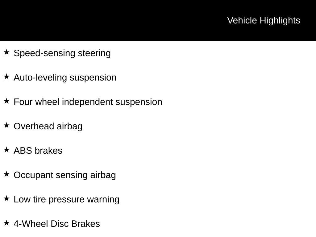- 4-Wheel Disc Brakes w/4-Wheel ABS, Front Vented Discs, Brake Assist, Hill Descent Control, Hill Hold Control and Electric Parking Brake