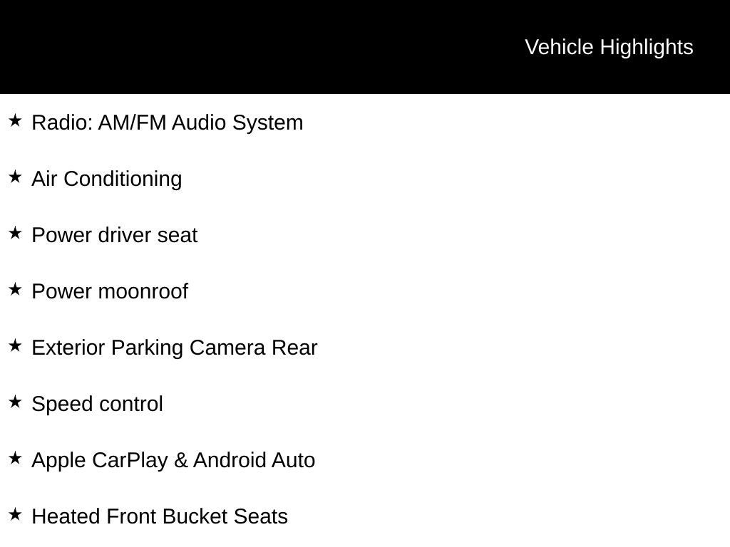 - Radio: AM/FM Audio System -inc: low-cost display audio, 8" color touchscreen, 6 speakers, SiriusXM satellite radio w/3-month trial subscription, HD Radio, Blue Link connected car system, Bluetooth®, wireless Apple CarPlay and Android Auto and dual front high-power USB outlets