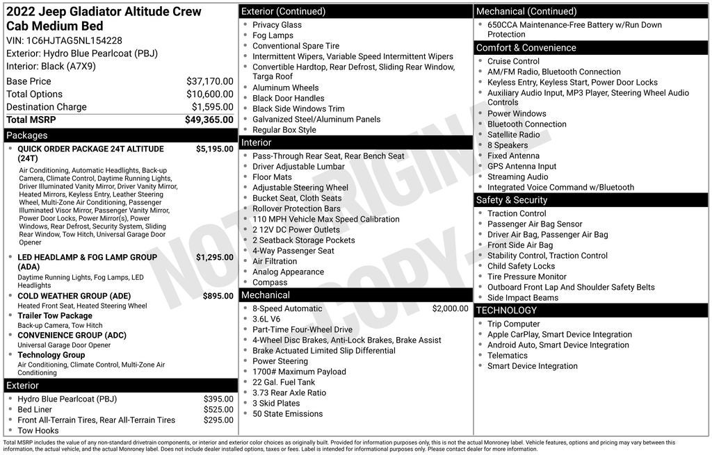 Price excludes Dealer Processing Charge (not required by law):$1,199
