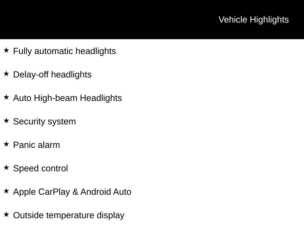 - Radio: AM/FM Audio System -inc: 8" touchscreen, 6 speakers, Apple CarPlay & Android Auto, voice recognition, USB/aux input ports, steering wheel controls and Bluetooth® w/audio streaming
