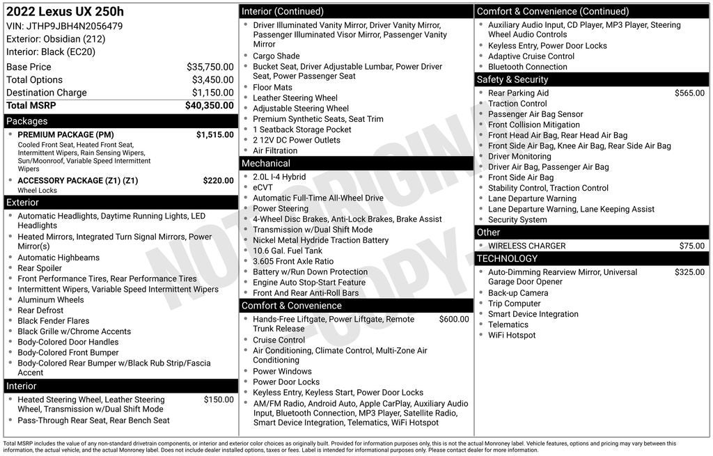 This 2022 Lexus UX 250h Base is a true standout in the luxury crossover segment, offering a winning combination of efficiency, premium features, and Lexus-level quality. Experience the difference for yourself and schedule a test drive today. We're confident you'll be impressed by this exceptional vehicle.