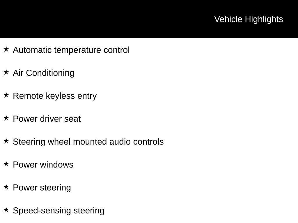 - Radio w/Seek-Scan, Clock, Speed Compensated Volume Control, Steering Wheel Controls, Voice Activation and Radio Data System