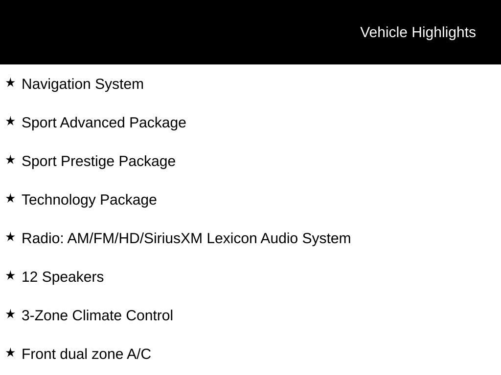 - Wheels: 19"x8.5J Fr & 19"x9.5J Rr Sport Alloy