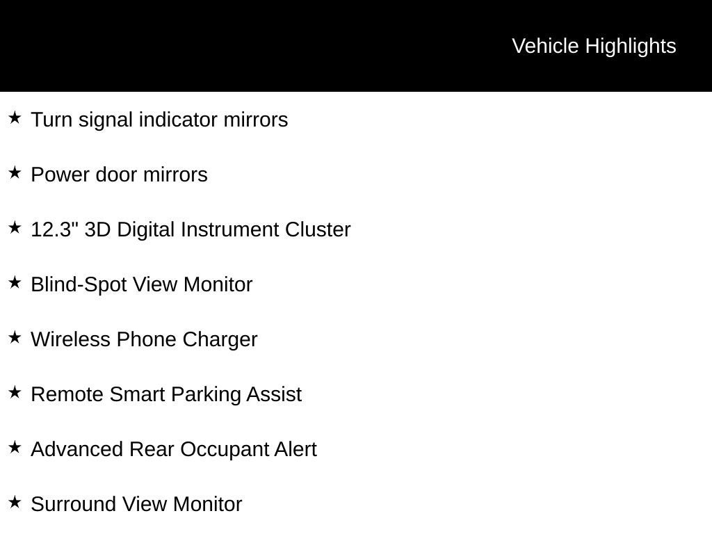 - Body-Colored Power w/Tilt Down Heated Auto Dimming Side Mirrors w/Power Folding and Turn Signal Indicator