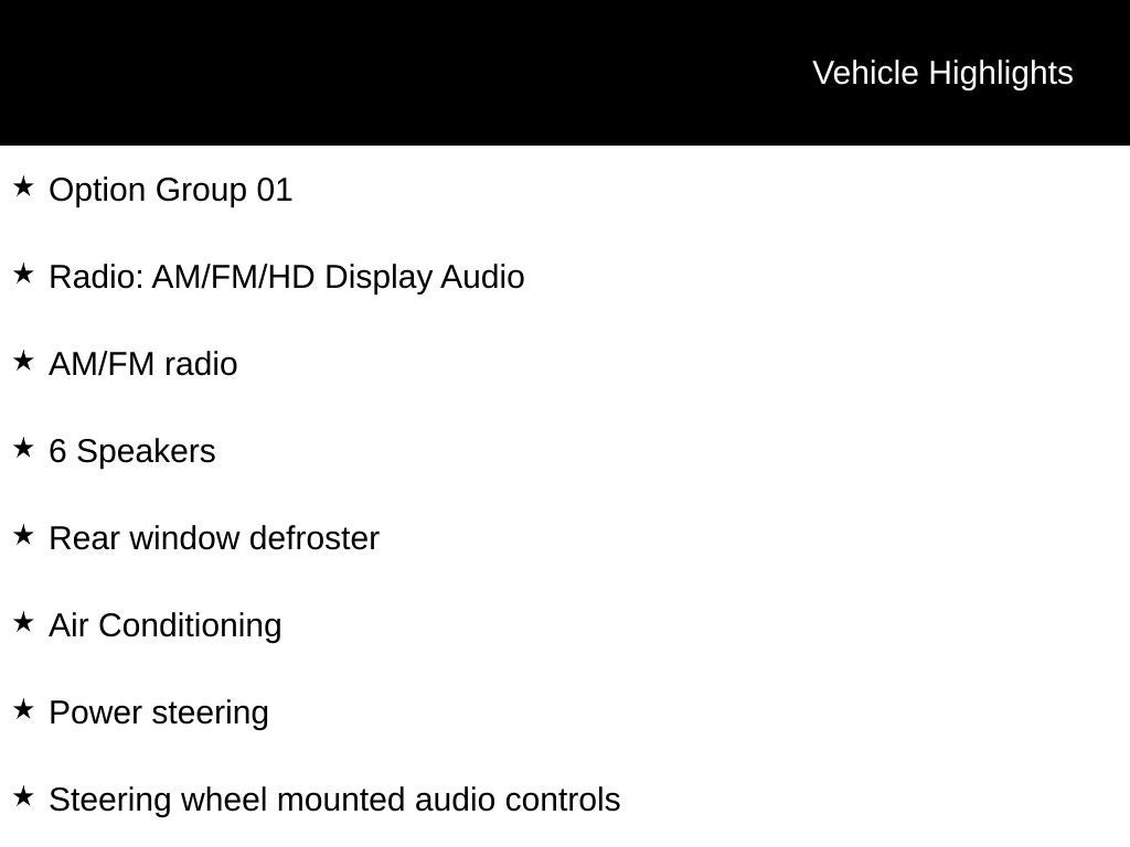 - Radio w/Seek-Scan, Clock, Aux Audio Input Jack, Steering Wheel Controls and Voice Activation