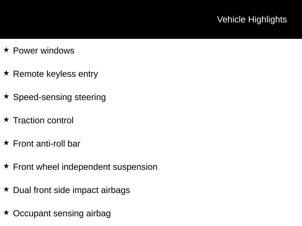 - Front Bucket Seats -inc: 6-way adjustable manual driver's seat and 6-way adjustable front passenger seat