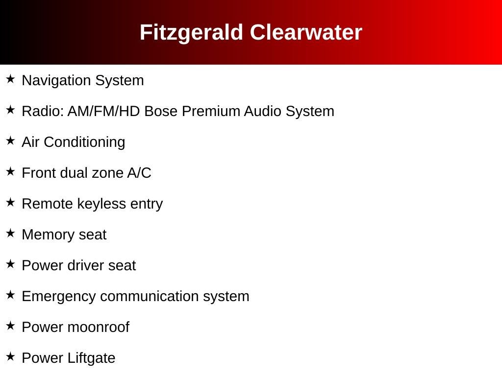 - Radio w/Seek-Scan, Clock, Speed Compensated Volume Control and Steering Wheel Controls
