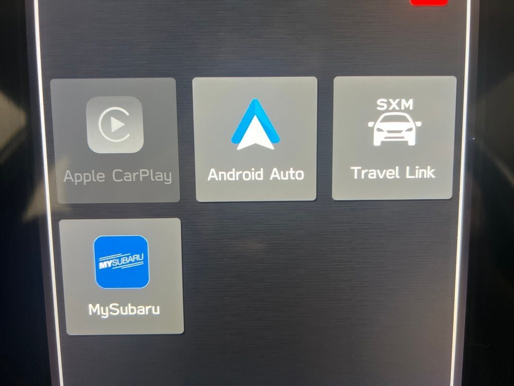- Radio: Subaru STARLINK 11.6" Multimedia Plus Sys -inc: AM/FM stereo, HD Radio, multi-touch gesture high resolution display screen, voice activated controls, Bluetooth® audio streaming and hands-free phone connectivity, Bluetooth® hands-free SMS text messaging connectivity, iPod control capability, SiriusXM All Access Radio (4 months free trial included/subscription required after), SiriusXM Travel Link (4 months free trial included/subscription required after), smartphone integration: Android Auto and Apple CarPlay w/full screen view and wireless connection, USB and Over The Air (OTA) audio system update, steering wheel audio system and Bluetooth® control switches, 6 speakers (2 dash panel tweeter, 2 front door and 2 rear door), illuminated 3.5mm auxiliary input jack, illuminated front USB A and C input/charge ports and illuminated rear USB A and C charge ports