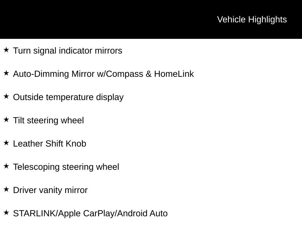 - STARLINK/Apple CarPlay/Android Auto