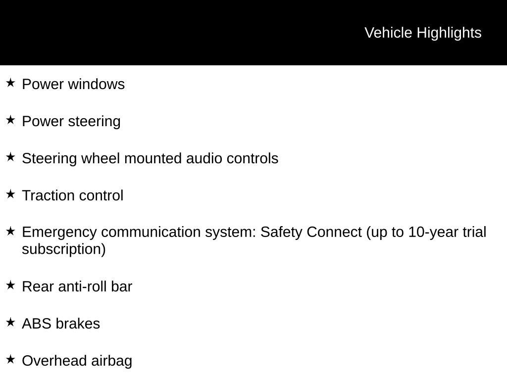 - Emergency communication system: Safety Connect (up to 10-year trial subscription)
