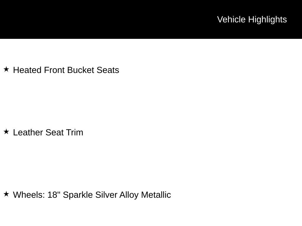 - Wheels: 18" Sparkle Silver Alloy Metallic