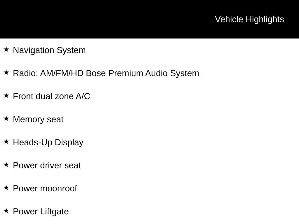 - Fixed Glass 2nd Row Sunroof w/Power Sunshade