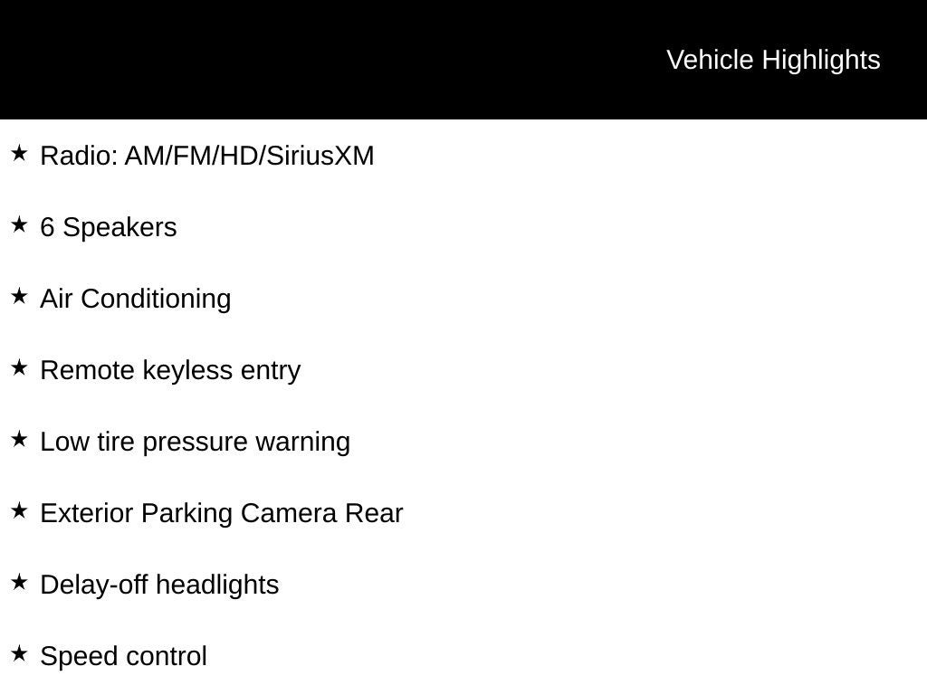 - Radio w/Seek-Scan, Clock, Speed Compensated Volume Control, Aux Audio Input Jack, Steering Wheel Controls and Radio Data System
