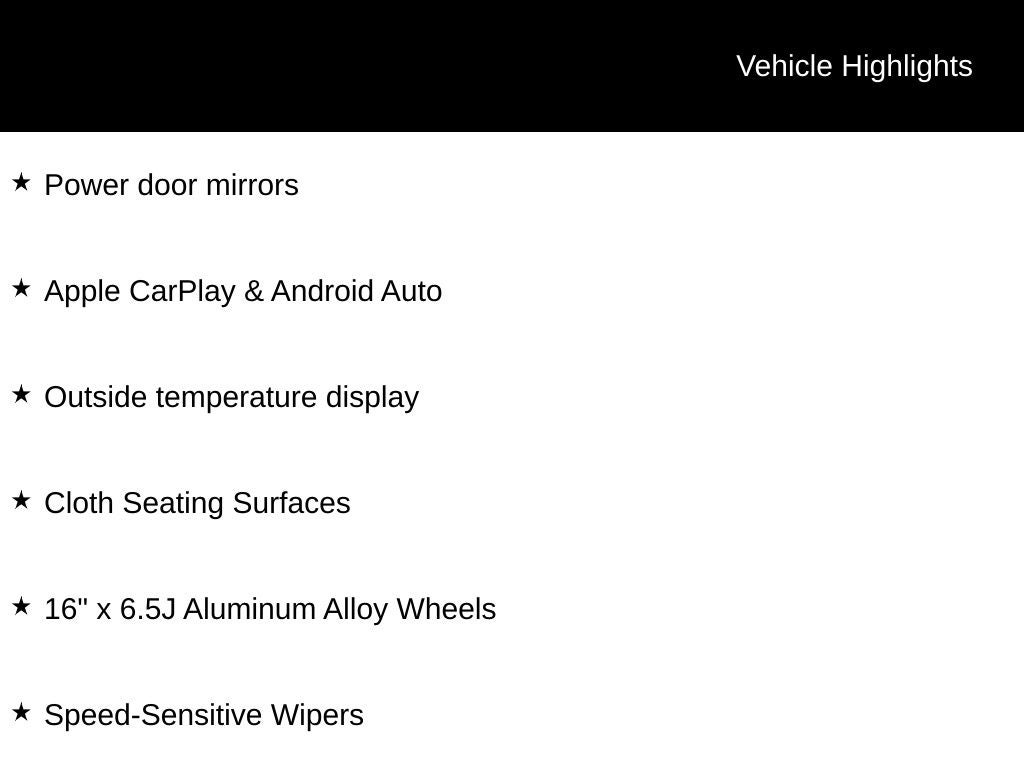 - Wheels: 16" x 6.5J Aluminum Alloy