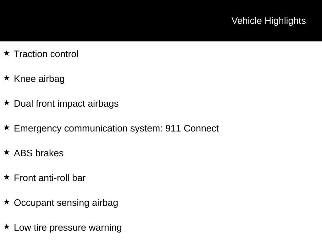 - Radio w/Seek-Scan, Clock, Speed Compensated Volume Control, Aux Audio Input Jack, Steering Wheel Controls and Radio Data System